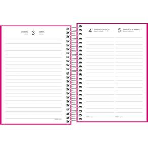 Agenda capa dura, espiralada com visão de 1 dia por página, exceto sábado e domingo. Ideal para a organização do dia a dia.