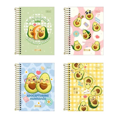 Se você busca um produto de papelaria fofa para se organizar, a agenda espiral Abacute da Tilibra é a escolha perfeita. O produto tem tamanho 11 x 15,4 cm, capa dura com glitter, bolsa plástica, adesivos e folhas superdecordas e coloridas, com visão de 1 dia por página, exceto aos sábados e domingos.