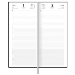 A Agenda Executiva Costurada Diária 12,3 x 27,5 cm Comercial 2026 é ideal para a organização em ambientes comerciais. Este produto, com visão de 1 dia por página, possui visual neutro e atual, com capa dura e 208 folhas.