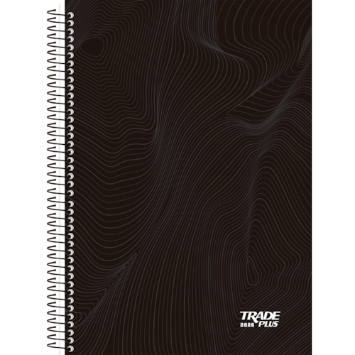 - Ano: 2026. - Cor: Preta e Azul. - Modelo: Trade Plus. - Quantidade de Folhas: 196. - Atributos: Agenda anual 1 dia por página. - Capa: Dura em Percalux, Espiral. - Formato cm: 20,0 x 27,5. - Horário das 7h às 23h30. - Marcação 30-30 minutos. - Gramatura: 63 G/M².