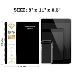 Agenda mensal 2025-2027 - Agenda mensal 2025-2027 com abas, julho de 2025 - junho de 2027, 23 x 28 cm, agenda de 24 meses com bolso, etiqueta, contatos - preta - ? Planejador mensal 2025-2027 - planejador 24 mensais, julho de 2025 a junho de 2027, apresentando 24 meses de páginas mensais com datas julianas e feriados marcados. - ? Tabelas e bolso – cada mês da nossa agenda mensal 2025-2027 é separado por abas. Bolso interno de dois lados nesta agenda mensal 2025-2027 para guardar itens soltos. - ? Design profissional – a encadernação de fio duplo permite dobrar em 360 graus. Visão geral anual 2025-2027/4 contatos importantes/6 páginas de contato/6 páginas de senha/feriados. - ? Funcional e elegante – Blocos diários sem pautas para agendamento aberto e colunas de anotações para seus itens espontâneos e importantes. Referências mensais passadas, presentes e 3 futuras nas páginas de planejamento mensal. - ? Qualidade premium e luxuosa – Papel branco mais espesso e sem ácido, este planejador mensal 2025-2027 é resistente a vazamentos de tinta, apagando problemas de desgaste e sombreamento 2025-2027 é resistente a vazamentos de tinta, apagamento e problemas de sombreamento.