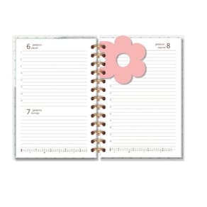 A collab com Sof Martins também ganhou sua versão P Com traços florais e hot stamp, essa agenda combina organização com poesia visual. Perfeita para quem quer rotina prática com estilo e significado.