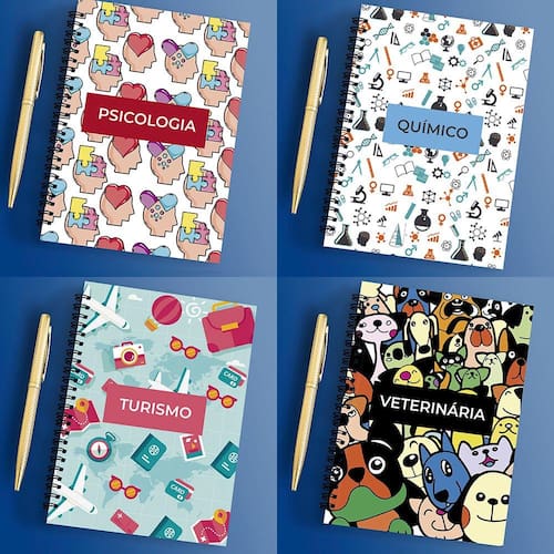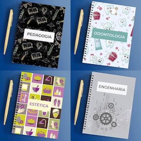 Material: Capa Dura PET; Miolo: papel offset 75 gramas