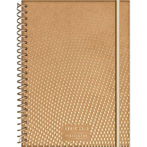 Agenda planejamento espiral 177x242mm 160pgs 04pt kraft gold fsc, base em papel kraft, foil metalizado, bolso em papel kraft, guarda kraft, fechamento com elastico, miolo datado, visao anual, mensal e semanal. Embalagem: pct.C/04 Marca: Não Informado Ean: 7894494229275