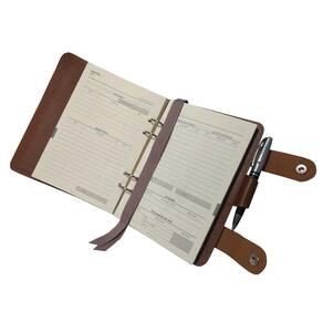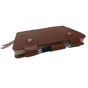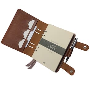 • Medidas 165 x 210 mm fechada, com aba para papéis e fechamento por botão magnético.