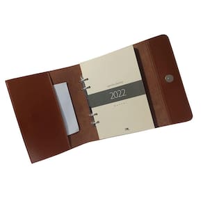 • Medidas 165 x 210 mm fechada, com aba para papéis e fechamento por botão magnético.