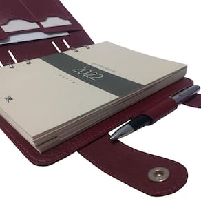 • Medidas 165 x 210 mm fechada, com aba para papéis, três porta cartões, fechamento por botão magnético e cortes frontais à laser para acomodação da ferragem.