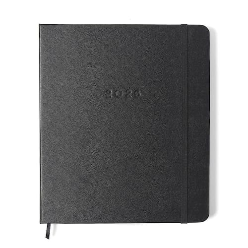 Capa material pelica, com "2026" e logo em baixo relevo.