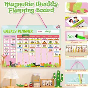 Agenda semanal para crianças - Calendário de quadro de comportamento magnético com 237 ímãs, caixa de armazenamento, cavaletes, ganchos, cordão e caneta - rotina diária e tabela de tarefas - Agenda visual para crianças a partir de 3 anos (tema animal) - Planejamento e orientação divertidos: uma combinação de rotina matinal/noturna + agenda semanal com um tema animal fofo e cores agradáveis, tornou visual e também transformou o planejamento em uma experiência divertida. É um ótimo calendário para crianças, pois estimula a organização, a interação e promove a independência. - Personalizável e reutilizável: as crianças não apenas gravaram a semana inteira, mas também planejaram tarefas diárias repetitivas e rotinas de manhã e à noite. O quadro magnético resistente e suave vem com um marcador apagável a seco que pode ser escrito e limpo sobre todo o planejador semanal e ímãs em branco. - Função de armazenamento de vários ímãs: um total de 237 ímãs em 6 categorias estão disponíveis para planejar várias atividades. As ilustrações podem ser facilmente compreendidas, mesmo por crianças que ainda não sabem ler. A caixa de armazenamento prática mantém os ímãs limpos, arrumados e com fácil alcance. - Em pé e pendurado: como um gráfico de tarefas para crianças, pode ser pendurado na parede ou colocado em uma mesa com dois cavaletes de exibição. Incentiva as crianças a serem criativas e serve como um belo elemento decorativo no quarto e canto de qualquer criança. - Um bom ajudante para educação doméstica: nosso planejador semanal magnético inclui um quadro magnético, ímãs de atividade, um cabo para pendurar, uma caneta limpável, 2 cavaletes de exibição, 2 ganchos e uma caixa de armazenamento prática. Ele oferece uma maneira interativa de ajudar as crianças a se manterem organizadas e dentro do cronograma durante todo o dia.