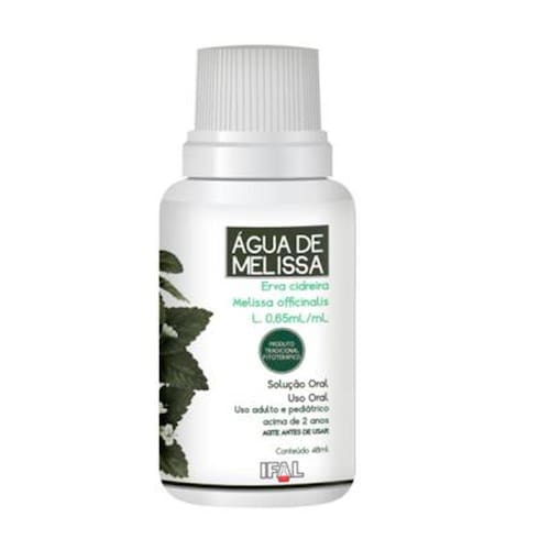 Princípio ativo da Água de Melissa Ifal: Melissa officinalis Contra-indicações: Não deve ser utilizado em casos de hipotireoidismo. Contra indicado para menores de 2 anos. Mulheres grávidas ou amamentando não devem utilizar esse produto Crianças acima de 2 anos: 40 gotas 2ml diluidas em água 4x ao diaAdultos: 60 gotas 3 ml diluída em água 4x ao diaSiga corretamente o modo de usar, não desaparecendo os sintomas procurar orientação médica.A norma da Anvisa que dispõe sobre o registro de medicamentos fitoterápicos e o registro e a notificação de produtos tradicionais fitoterápicos é a RDC nº 26/2014. Marca: Equilibrium