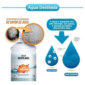 Água Destilada Togmax 5 Litros O que é Agua Destilada O produto tem esse nome porque passa por um processo de destilação, ou seja, enfrenta uma evaporação e condensação do vapor da água. Sendo assim, tem seus minerais e impurezas removidos - entre eles, metais e microrganismos.