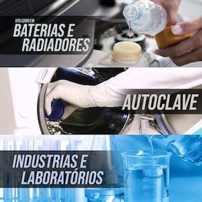 Para a destilação em laboratório, a água passa por um conjunto de balão de destilação, condensador, chapa de aquecimento e um recipiente. Então, é preciso colocar a água no balão para acontecer a vaporização. Esse vapor é encaminhado para o condensador, ou seja, é lá que o vapor vira água líquida. Em conclusão, ela cai no recipiente já como água destilada. Para que serve A água destilada tem diversas funções na indústria, especialmente como reagente ou solvente em processos químicos. Assim, é usada em laboratórios, hospitais e consultórios odontológicos. Por exemplo: