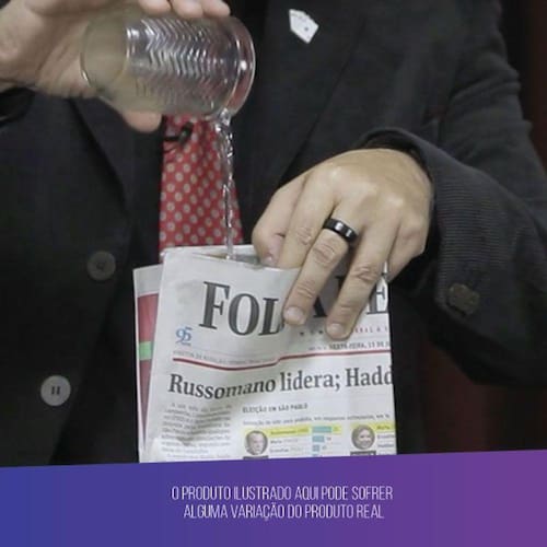 Água No Jornal - Saco - Magic UpEfeito: O Mágico mostra um jornal para o público, coloca água dentro, vira-o ao contrário e, para surpresa de todos, a água não cai. Após essa performance, o Mágico vira novamente o jornal e derrama a água de volta no copo. Acompanhe uma folha de plástico preparada e vídeo explicativo para montar o jornalItem incluso:1 gimmick de mágica para criar o efeito1 manual de instrução
