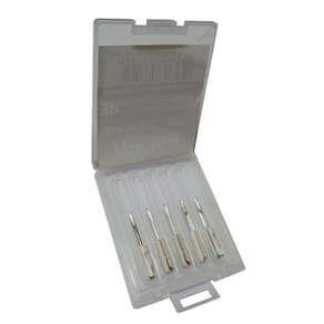 Características: - Kit com 5 agulhas especiais para aplicadores FINE. - Agulhas curtas de aço com suporte plástico. - Indicadas para tecidos finos e delicados. - Podem ser utilizadas com qualquer medida de pino plástico FINE.