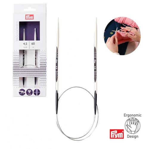 Agulha Circular para Tricô Prym Ergonomics 60cm 4.5mm As Agulhas Circulares Ergonomics para Tricô da Prym tornam o tricô mais fácil, confortável e bonito. As agulhas são feitas de um plástico de alta qualidade e alta performance e são facilmente flexíveis, ou seja, vibram com a malha. São adequadas para iniciantes graças à ponta em forma de lágrima, porque a orientação do fio é muito mais fácil e o fio não escorrega da ponta tão rapidamente. Temos disponíveis os demais tamanhos da linha Ergonomics em nossa loja. - Marca: Prym- Modelo: Agulhas Circulares - Referência: 2156-05- Contém 01 unidade- Tamanho: 4.50mm 60cm- Composição: Plástico de alto empenho