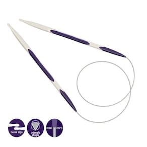 Agulha Circular para Tricô Prym Ergonomics 80cm 4.5mm As Agulhas Circulares Ergonomics para Tricô da Prym tornam o tricô mais fácil, confortável e bonito. As agulhas são feitas de um plástico de alta qualidade e alta performance e são facilmente flexíveis, ou seja, vibram com a malha. São adequadas para iniciantes graças à ponta em forma de lágrima, porque a orientação do fio é muito mais fácil e o fio não escorrega da ponta tão rapidamente. Temos disponíveis os demais tamanhos da linha Ergonomics em nossa loja. - Marca: Prym- Modelo: Agulhas Circulares - Referência: 2158-05- Contém 01 unidade- Tamanho: 4.5mm 80cm- Composição: Plástico de alto empenho