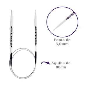 Agulha Circular para Tricô Prym Ergonomics 80cm 5.0mm As Agulhas Circulares Ergonomics para Tricô da Prym tornam o tricô mais fácil, confortável e bonito. As agulhas são feitas de um plástico de alta qualidade e alta performance e são facilmente flexíveis, ou seja, vibram com a malha. São adequadas para iniciantes graças à ponta em forma de lágrima, porque a orientação do fio é muito mais fácil e o fio não escorrega da ponta tão rapidamente.