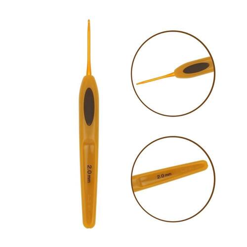 - Marca: Clover - Modelo: Agulha para Crochê - Referência: 1001 - Contém 01 unidade - Cor: Dourado - Cabo ergonômico - Ponta de 2.0mm - Corpo emborrachado - Tamanho: 13,5cm - Composição: alumínio e resina ABS
