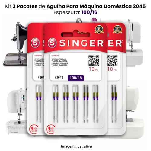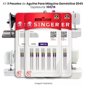 Agulha singer para máquina de costura domestica 2045 130/705 (kit com 3 pacotes) As agulhas singer 2045 são recomendadas para máquinas domésticas e para realizar os seguintes trabalhos:- costura em tecidos de malha ou com elasticidade- costura em couros leves- tecidos leves Agulha foi projetada para deslizar entre a trama dos tecidos de malha, sem puxar os fios, devido a uma ponta arredondada. O kit acompanha 3 pacotes apenas de uma única espessura.Cada pacote contém 10 agulhas, ou seja você estará comprando 30 agulhas da espessura que escolheuAs espessuras existentes são:- singer 2045 70/10- singer 2045 80/12- singer 2045 90/14- singer 2045 100/16 Atenção não iremos realizar a troca de espessuras depois que a compra é finalizada e não iremos colocar uma espessura diferente junto com outra espessura. O kit acompanha apenas 3 pacotes da mesma espessura. Mas pensando nessas situações, criamos outro anúncio com espessuras diferentes e vendemos os pacotes individuais de cada uma. Basta acessar nosso perfil clicando em ver mais dados deste vendedor, na nova página que será aberta basta rolar para baixo e clicar ver todas na parte dos anúncios do vendedor. Agulha singer 2045 serve nas máquinas domésticas:- singer facilita pro 4423- singer pop bl1009- singer tomasse 1409- singer starlet doméstica- lenoxx- janome 8002d- siruba hso-747d- overlock doméstica- entre outras marcas e modelos de máquinas domésticas Agulha para máquina domésticaAgulha para máquina doméstica singerAgulha para máquina doméstica janoneAgulha para máquina doméstica lenoxxAgulha para máquina doméstica overlock