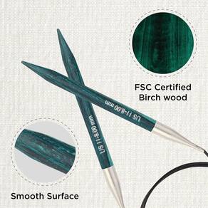 - Conforto sensorial e prazer: as agulhas circulares fixas feitas de madeira de bétula oferecem uma superfície lisa e polida que é deliciosamente quente ao toque. Isso não apenas oferece um puro prazer sensorial, mas também garante o máximo conforto durante as sessões de tricô.