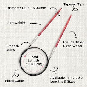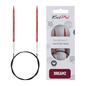 KnitPro As agulhas circulares fixas Dreamz são duas agulhas de tricô de madeira de bétula unidas permanentemente com um cordão de nylon macio e flexível. É a escolha preferida entre os knitters para facilitar o tricô nas rodadas. Estas agulhas vêm em vários tamanhos, como 25,4 cm (11 tamanhos), 40,6 cm (19 tamanhos), 61 cm (20 tamanhos), 81 cm (20 tamanhos), 101,6 cm (20 tamanhos) e 119 cm (20 tamanhos) para acomodar uma variedade de projetos. Oferecendo conveniência e facilidade de uso, essas agulhas de tricô são um item essencial em uma caixa de artesanato de tricô.