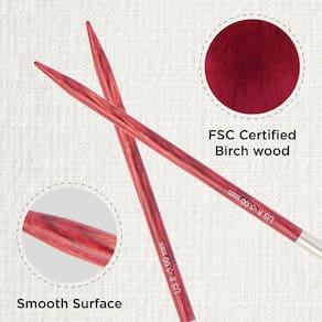 - Conforto sensorial e prazer: as agulhas circulares fixas feitas de madeira de bétula oferecem uma superfície lisa e polida que é deliciosamente quente ao toque. Isso não apenas oferece um puro prazer sensorial, mas também garante o máximo conforto durante as sessões de tricô.