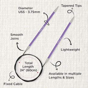 - Alumínio leve de grau superior: as agulhas circulares fixas Zing são fabricadas em alumínio leve de grau superior. Estas agulhas leves com pontas afuniladas passam perfeitamente por todos os tipos de fios. A superfície lisa das agulhas de tricô de alumínio permite uma melhor aderência e uma experiência de tricô suave.