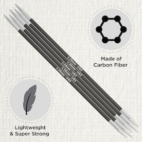 - Material leve e super forte: a fibra de carbono como material tem alta relação resistência/peso, o que a torna uma escolha impecável de material para uma agulha de tricô. A agulha KnitPro Karbonz, feita de fibra de carbono, apresenta força excepcional e rigidez das fibras de carbono. A natureza leve da fibra de carbono faz com que pareça leve e fácil em suas mãos em comparação com outras agulhas de tricô.