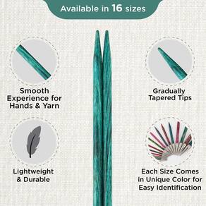 - Feito de madeira de bétula especialmente selecionada: as agulhas Dreamz são feitas de madeira de bétula especialmente selecionada, garantindo alta qualidade e durabilidade. Estas agulhas de tricô são feitas de madeira de bétula certificada FSC, o que as torna ecológicas. Com seu design leve, eles fornecem facilidade e conforto durante o tricô. Eles são compatíveis com todos os tipos de fios e são recomendados para vários projetos de tricô.