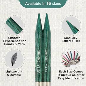 - Conforto sensorial e prazer: as agulhas circulares intercambiáveis feitas de madeira de bétula oferecem uma superfície lisa e polida que é deliciosamente quente ao toque. Isso não apenas oferece um puro prazer sensorial, mas também garante o máximo conforto durante as sessões de tricô.