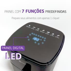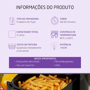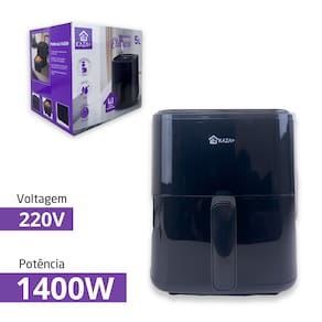 Air Fryer Digital Kaza+ 5L, 1400W, painel touch, temperatura ajustável de 80°C a 200°C, timer até 60 minutos, cesto antiaderente, alça com toque frio.Porta-fio