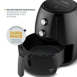 Tecnologia Air Flow 360 para cocção uniforme. Cesto e cuba com revestimento antiaderente. Fundo removível. Luz indicadora de funcionamento. Base antiderrapante. Sistema de proteção contra sobreaquecimento. Pode ser levada à lava louças.Porta-fio
