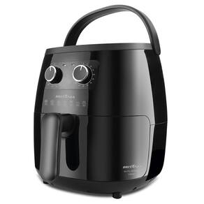 Frita com pouquíssimo ou nenhum óleo; Seletor de temperatura com ajuste de 80 a 200°C; Timer mecânico de 60 minutos; Capacidade do cesto 5 litros; Capacidade da cuba de 6 litros; Luz indicadora de funcionamento – Vermelha; Luz Indicadora de aquecimento – Verde; Desligamento automático; Base antiderrapante; Cesto removível com revestimento antiaderente; Trava de segurança; Sistema de proteção contra sobreaquecimento; Composição: Metal e Plástico.Porta-fio