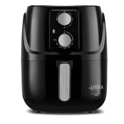 Air Fryer Britânia Bella Cuccina 3L, 1300W, temperatura ajustável de 80 a 200 graus, timer de 60 minutos com desligamento automático, cesto removível com revestimento antiaderente, sistema de proteção contra sobreaquecimento.Porta-fio