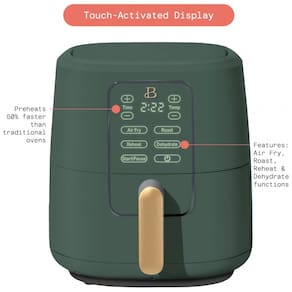 Descubra a Air Fryer Digital de 6 litros da Generic com a inovadora Tecnologia TurboCrisp, desenvolvida para cozinhar alimentos de forma rápida e uniforme, usando apenas um mínimo de óleo, reduzindo até 75% da gordura, garantindo refeições mais saudáveis e saborosas. Com 4 funções pré-programadas – fritar, assar, grelhar e reaquecer – você tem versatilidade total para preparar seus pratos favoritos com praticidade. Ajuste a temperatura entre 77°C e 204°C para um controle preciso, adaptando-se perfeitamente a qualquer receita. O design elegante, assinado por Drew Barrymore, traz um toque moderno com detalhes em dourado e a sofisticada cor Verde Erva, que se encaixa harmoniosamente em qualquer cozinha contemporânea. A bandeja e o cesto antiaderentes não contêm PFOA nem PFOS, facilitando a limpeza, que pode ser feita na lava-louças sem complicações. Com potência de 1750 watts, esta air fryer entrega performance rápida e eficiente para que seus pratos fiquem crocantes por fora e macios por dentro. Conta ainda com um display digital sensível ao toque, timer de 60 minutos com desligamento automático para segurança adicional, e controle digital para praticidade no uso diário. Leve, funcional e estilosa, é a escolha ideal para quem busca alimentação saudável sem abrir mão do sabor e da conveniência.