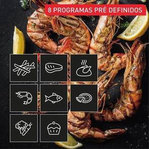 Ultra capacidade para preparar grandes receitas para toda a família - Cesto com 7,5 litros - Serve até 8 pessoas - Painel digital com 8 programas pré definidos - 1700 W