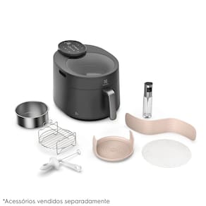 Com uma capacidade total de 5,1 litros, a Air Fryer Electrolux é perfeita para preparar porções generosas para toda a família, com até 90% menos gordura e 50% menos calorias, sem abrir mão do sabor e da textura de frito.