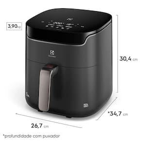 A Air Fryer Electrolux por Rita Lobo 5,6L Cinza Experience possui painel digital Assistant Touch, super intuitivo e de fácil operação. Ele conta com 5 receitas sugeridas: batata, vegetais, frango, carne e peixe e 4 funções: Função Virar, aviso sonoro e luminoso que indica a hora de virar o alimento; Função AirFry, ideal para fritar ou assar sem uso de óleo; Função Assar, para fazer bolos, muffins e outras receitas incríveis de forma rápida e fácil; e Função Reaquecer, que reaquece sua refeição sem perder o sabor. Sem desperdício, você garante que os pratos do dia anterior continuem saborosos como se fossem feitos na hora.