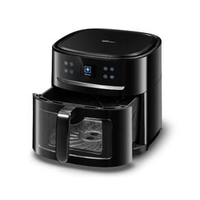Air Fryer com 8 litros de capacidade, sistema Smart com sensor interno que reconhece até 12 alimentos diferentes e ajusta automaticamente o tempo e a temperatura ideais para cada tipo de preparo. Possui visor transparente com lâmpada para acompanhar o preparo, controle automático de temperatura de 50 a 200°C, timer com auto desligamento de até 60 minutos e potência de 1.700W.Porta-fio