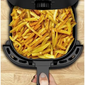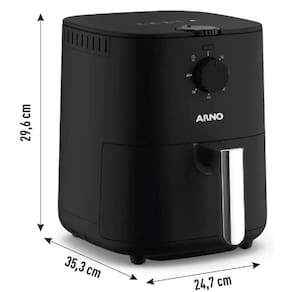 Air Fryer Fritadeira Eletrica Arno 1280w Com Timer All Black 127v Com a nova Airfry da ARNO você saboreia suas receitas preferidas com muito mais crocância. Além de praticidade e versatilidade ela tem um design inovador, compacta e com acabamento que combina com a sua cozinha! A tecnologia Hot Air presente na fritadeira Airfry permite a circulação uniforme do ar quente proporcionando um cozimento perfeito, sem a necessidade da utilização de óleo. Prepare Batatas fritas, frango à passarinho, pão de alho, peixe assado, além das suas próprias receitas através do amplo controle de tempo e temperatura que a nova Airfry proporciona, tudo sem utilizar óleo* deixando os seus alimentos crocantes, saborosos e saudáveis! A Airfry é eficiente e compacta, e permite o preparo de alimentos de forma mais saudável, através da tecnologia Hot Air. Sua capacidade é de 3,5L e serve perfeitamente até 4 pessoas. A Fritadeira sem óleo oferece uma variedade de opções na cozinha, podendo assar, fritar, grelhar e aquecer proporcionando total controle sobre suas receitas, graças ao seu sistema de controle de temperatura de 80C até 200C e um timer de até 60 minutos para facilitar sua Técnica:Potência: 1280WConsumo (kW/h/mês): 6,4 kW/h/mêsTipo de Material: PlásticoComp. Cabo (cm): 20cmVolume: 3,5LCom controle de temperatura: SimTemperatura mínima: 80CTemperatura máxima: 200CFunções: FritarTipos de controle: AnalógicoAltura: 37,5cmLargura: 32,5cmProfundidade: 34,0cmPeso: 6,5Kg