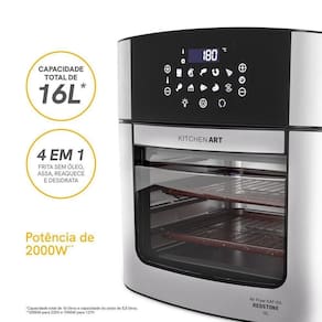 Conheça a Air Fryer Kitchen Art 16L 4 em 1 com Espeto Rotisserie KAF16A que vai transformar sua cozinha! Com 16L de capacidade total, prepare uma grande quantidade de alimentos de uma só vez, perfeita para refeições em família.