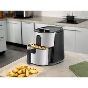 Incrível por fora e uma suavidade deliciosa por dentro! Equipada com maior capacidade total, ou seja, é perfeita para famílias que gostam de preparar diversas receitas, ela possui 5,7 litros total de capacidade e 4,3 litros do cesto, que é quadrado, removível e conta com antiaderente, graças ao seu revestimento Fast Clean, que garante maior durabilidade e praticidade no momento de limpar, pois o alimento não gruda. Já o controle de temperatura, um seletor com ajuste de 80 a 200 graus, permite que você escolha o que melhor se adequa para cada tipo de receita.