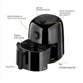 Essa Air Fryer possui uma capacidade de 3,5L, permitindo que você prepare uma quantidade generosa de alimentos de uma só vez. Além disso, ela possui um timer sonoro e desligamento automático, garantindo que você não precise se preocupar com o tempo de cozimento.