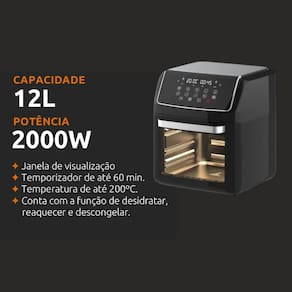 Air Fryer Oven Gaabor 12L com Controle Inteligente Holográfico, Janela Grande com Luz Inteligente, Menu Inteligente Integrado, Controle Preciso de Temperatura, Desligamento Automático e Revestimento Antiaderente.Bandeja para resíduos