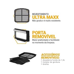 A porta com visor permite acompanhar cada etapa sem abrir a Air Fryer PAF11B, mantendo o calor e a textura perfeita dos alimentos. Além disso, o cesto com revestimento antiaderente e as peças laváveis na lava-louças tornam a limpeza leve e descomplicada.
