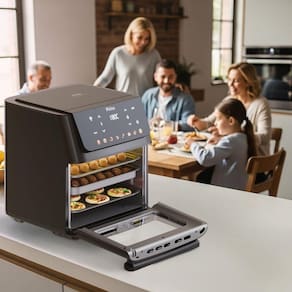 Com 8 funções pré-programadas, basta escolher o programa e deixar que ela faça todo o trabalho por você, crocância e sabor garantidos, sem esforço! A capacidade de 11 litros da Air Fryer Philco, acomoda receitas para toda a família, enquanto a função Programar e o Menu Favorito trazem liberdade para planejar suas refeições e preparar tudo com um toque.