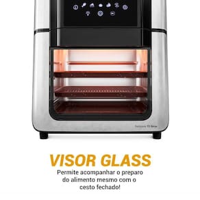 Descrição do produtoCompartilhe momentos incríveis na cozinha ao lado de quem mais gosta, mas sem deixar a praticidade de lado! Com a Air Fryer Oven Philco 15L Redstone Painel Digital PAF15A, você prepara receitas de diversos tamanhos de modo fácil, afinal, são 15L de capacidade. A limpeza não é uma tarefa complicada, pois, além do revestimento antiaderente Redstone que evita que os alimentos grudem, a Air Fryer Philco possui porta removível, para mais facilidade na higienização. Conta ainda com painel digital, que traz modernidade e elegância à sua cozinha, sem abrir mão da praticidade. Com 10 funções pré-programadas, você escolhe a que mais se adequa à sua necessidade e com apenas um toque! Através do Visor Glass é possível acompanhar o preparo do alimento mesmo com o aparelho ligado, sem perder o calor interno. Além disso, o controle de temperatura permite ajustar de acordo com cada tipo de receita, variando de 80 a 200C. Quer mais benefícios? A Air Fryer Philco PAF15A, acompanha também um cesto com capacidade para 5,5L, bandeja coletora e 2 grelhas, para que sua criatividade na cozinha não tenha limites! Air Fryer Oven Philco 15L Redstone Painel Digital PAF15A, sua companheira de cozinha! Afinal, tem facilidades que só a Philco faz para você! - Frita com pouquíssimo ou nenhum óleo - 2 em 1: Fritadeira e forno - Seletor de temperatura com ajuste de 80 a 200C - Timer de 90 minutos - Capacidade do cesto 5,5L - Capacidade total 15L - Função Desidratar com tempo e temperatura ajustável - Painel Digital com 10 funções pré-programadas - Acabamento em inox - Base antiderrapante - Produto acompanha 2 assadeiras, cesto antiaderente com 5,5L e alça removível, mais 1 bandeja coletora de gordura e migalhas - Assadeiras e Cesto com revestimento antiaderente REDSTONE - Proteção contra superaquecimento - Luz Interna - Porta Removível - Composição: Metal, plástico e vidro.