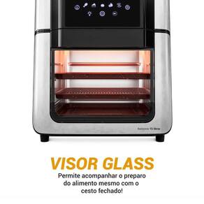 Air fryer oven com painel digital, 1900W (127V) / 2000W (220V), função timer, cesto antiaderente e removível, controle de temperatura de 80 a 200°C.Porta-fio