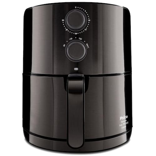 Air Fryer Philco 4,6L Titanium Inox com timer de 30 minutos, temperatura ajustável de 80°C a 200°C, cesto removível antiaderente, sistema de proteção contra superaquecimento e base antiderrapante.Porta-fio