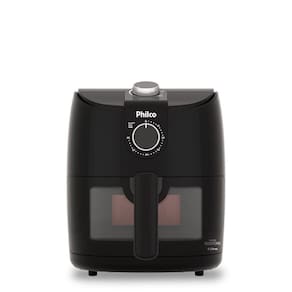 Air Fryer Philco com capacidade de 4 litros, 1500W de potência, revestimento Redstone, timer de 60 minutos, controle de temperatura de 80C a 200C, cesto removível, proteção contra sobreaquecimento e luz interna.Porta-fio